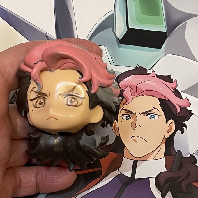 息子と話してだんだけど、水星の魔女のメカとキャラはいつも以上に立体化のことを考えて作られている印象で、グエルくんも一見謎髪型に見えて意外〜と作り易いなって🤔 #ねんどろカスタムグエル・ジェターク