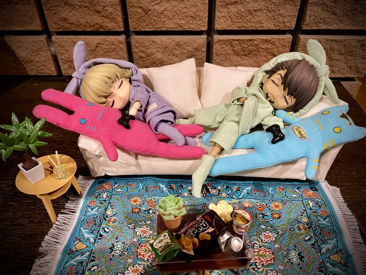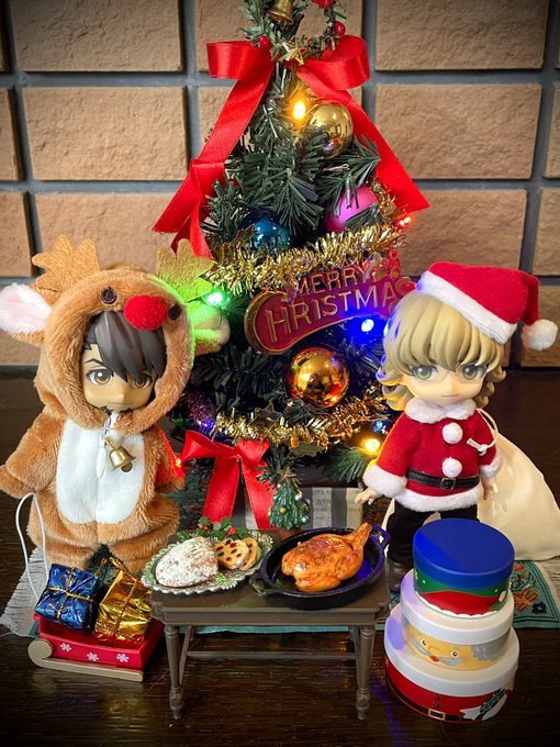 ✨🎅Merry Xmas!🎄✨ #ねんどろカスタム虎徹 #ねんどろカスタムバーナビー ローストチキンとシュトレンのミニチュアはAnneさん(@anne_e_0305 )より頂戴しました。どちらもめちゃくちゃ美味しそうです(*´﹃`* )