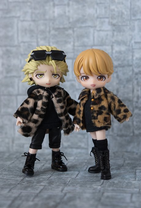 雑誌の取材っていうていで撮ってみた🤭 『バディとのリンクコーデ特集!』みたいな。 ヒョウ柄なんだけど、ちょうどオレンジみが強い生地と、黄色みがある生地でコート作ってあったのでぴったり~ 久しぶりに2人並べて、新しい写真撮れて楽しかった。 #ねんどろカリーナちゃん #ねんどろライアン
