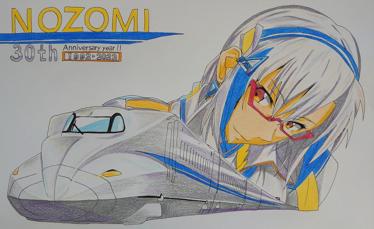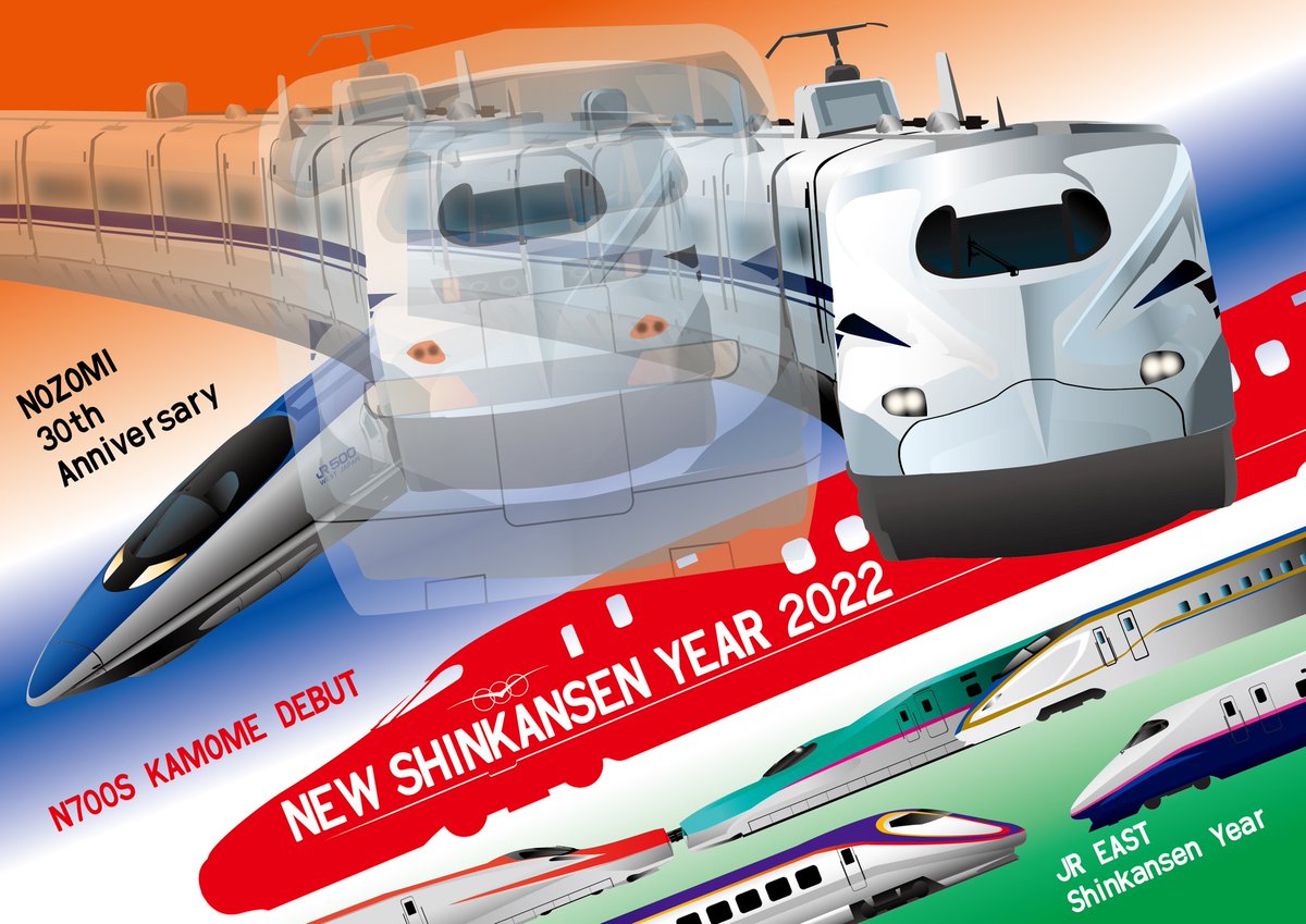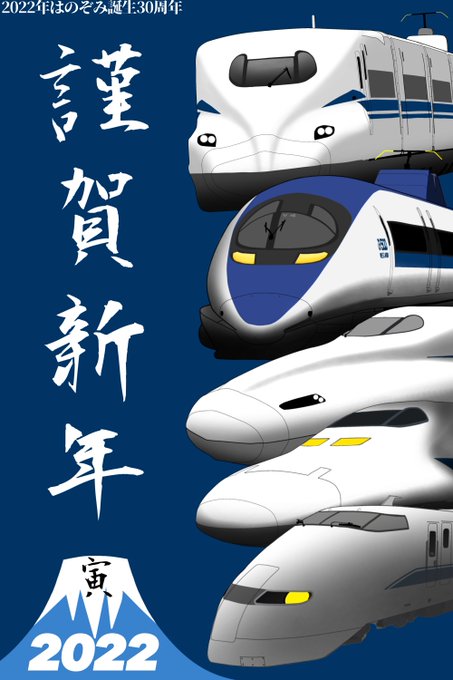 #あけましておめでとうございます #正月イラスト #のぞみ30周年 〜2022 Happy New Year!! 〜 新幹線アニバーサリーの1つ「のぞみ」が運行30周年を迎えるということでのぞみを担った車輌をTL向けの年賀状として新年1発目のイラストとして描き上げました!今年も当垢をよろしくおねがいします!!