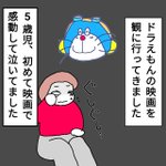 5歳児、ドラえもん映画で感動して泣いてました🥲 ストーリーの架橋で感動したそうですが、ドラえもんで初めて映画感動泣きを覚えるとは素晴らしい!😆✨ ドラえもん映画オススメです🥰 #5歳 #育児漫画 #のび太と空の理想郷