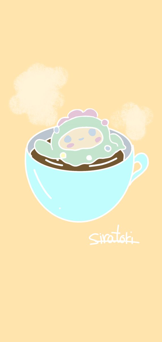 おはようございます。 マシュマロのせコーヒーでリラックス〜☕☕☕✨🍀 #のぼぼ #ゆるいイラスト #illustration #絵描きさんと繋がりたい #絵柄が好みっていう人にフォローされたい