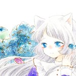 「蒼い涙」 あなたを想ってこぼれた涙が 小さな蒼い花を染めたなら あなたのそばでも そっと 咲きますように ホワイトワトソン 100×100mm #透明水彩 #言の花の手紙 出展作品 #のらねことワルツを