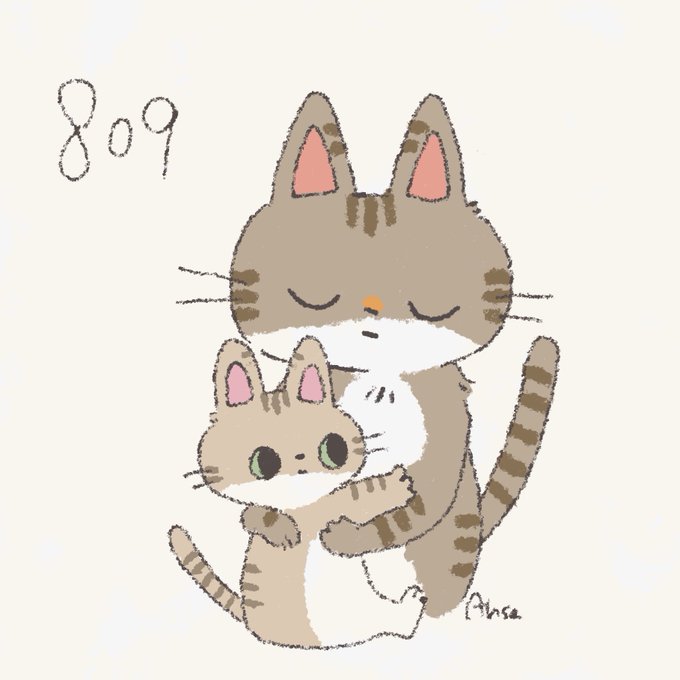 0809(81d) ハグの日 #イラスト #1日1猫 #illustration #illust #drowing #cat #100日チャレンジ #世界猫の日 #WorldCatDay #はぐの日2022