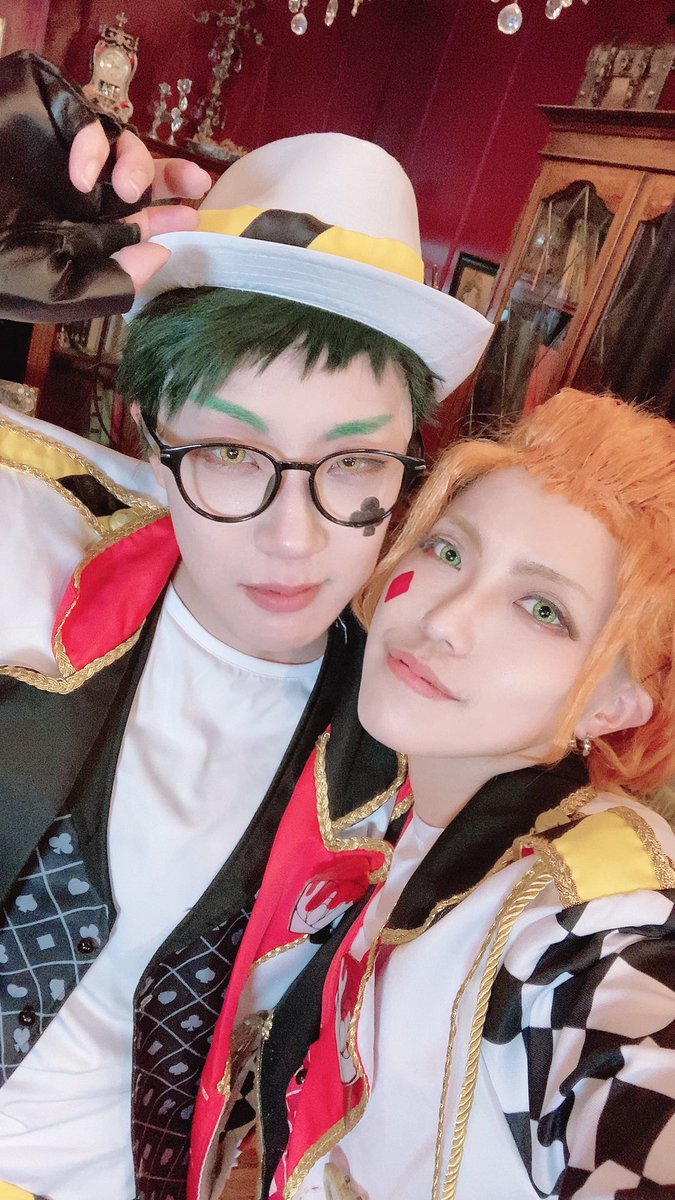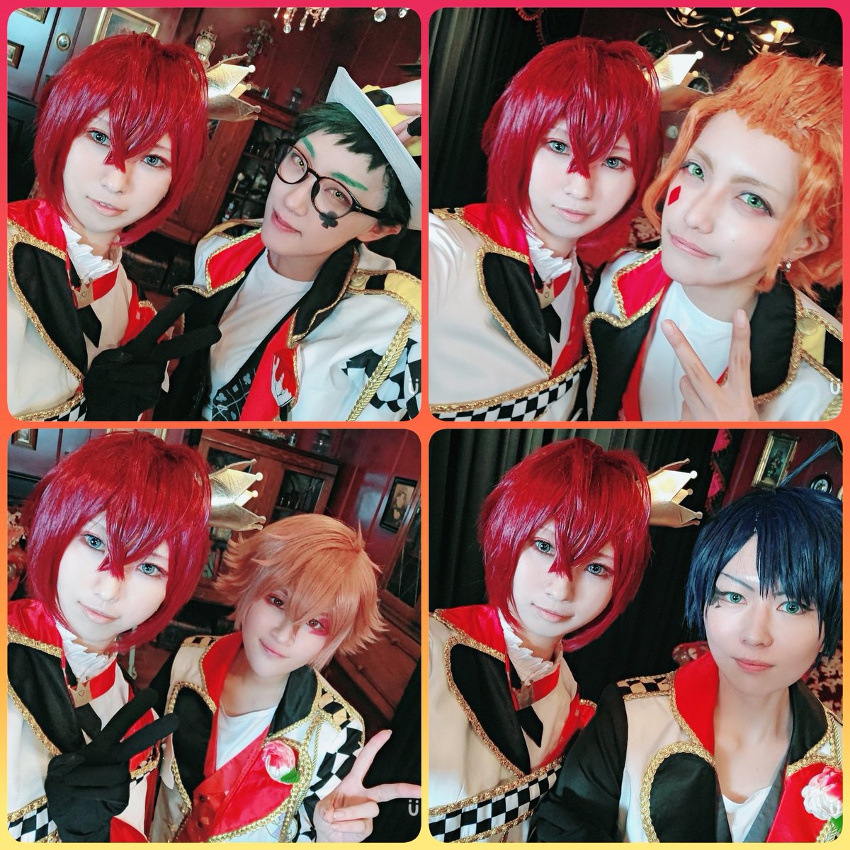 # いつもは厳しい寮長🤣 # でも俺らにとっては可愛い後輩😘 # 大切な我らの寮長🌹 # 家族写真みたいって言われた😆 🌹まおさん ♣️まるちゃん ♦️蓮 📷先生(@sensei_cos ) #はじめてのお茶会2022