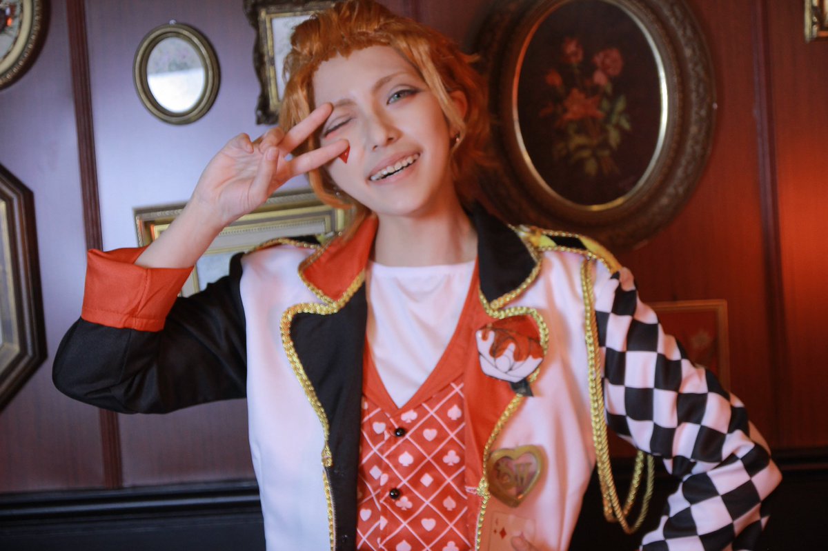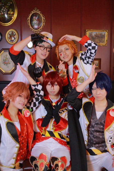 # ハーツラビュル寮🌹 # みんなでハート♡ # リドルくんデュースちゃん笑って😆 # エースちゃんバッチリ😉 # 指ハートも忘れずに😘 🌹まおさん ♣️まるさん ♦️蓮 ♥️若さん ♠️ふあるさん 📷先生 @sensei_cos #はじめてのお茶会2022