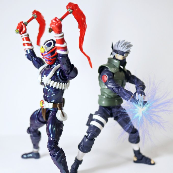 #夜のフィギュア撮影会 #オモ写 #toyphotography #仮面ライダー響鬼 #はたけカカシ #フィギュア撮影友の会 お題 開始 鬼と忍の共闘 「これより魔化魍/化物討伐を開始する」