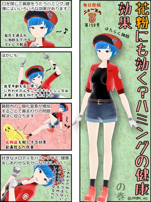 #ニュースの壷 「花粉にも効く?ハミングの健康効果」 ハミングをしていると体のあちこちが振動しているのがわかります。血行がよくなり、鼻づまりにも効くそうで、いいことづくめです! 自分で感じるほど音量は出ていませんが、周りにご注意。 #漫画が読めるハッシュタグ #はたらく細胞