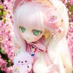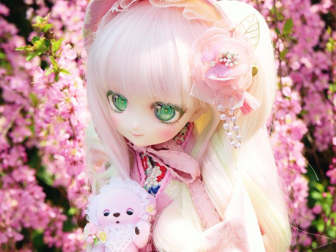 #nar_noir_doll 様よりお迎えした22番ちゃん🌸桜餅みたいなとっても可愛い子です😍 キラキラ若葉色のアイメイクに艶ぷるなリップ、細部まで美しすぎます✨ 💎エメラルドのアイ→#夜アイ 様 👘華やかなお着物→#お華着 様 🌸サクラピンクなウィッグ→#mimiel_doll 様 #MDDはいいぞ #はちす百花