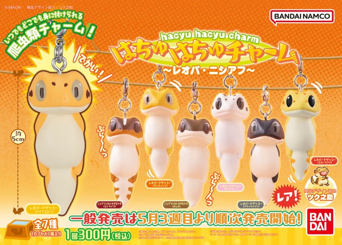 【告知】 いつでもどこでも、爬虫類といっしょ! 新シリーズ「はちゅはちゅチャーム」 2022年初夏に発売予定! 皆様の熱意のおかげで新シリーズ始動です! 第一弾はレオパ&ニシアフ。 第二段のフトアゴverも夏発売に向けて開発中! #はちゅはちゅチャーム #バンダイ