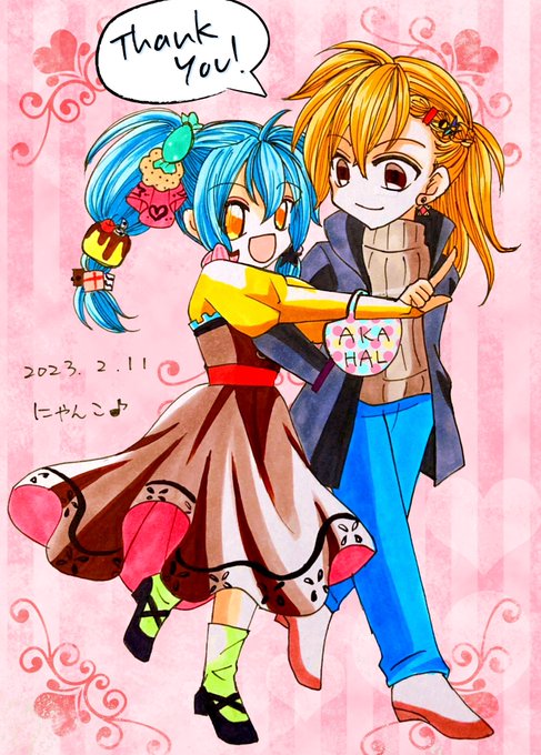 🌸ありがとうございました🌸 この度もネップリお迎え感謝です(◍>ᴗ<◍)🙏💖✨ ファイルの中でも騒がしい2人と思われますが、宜しくお願いします😆💦✨ #はっちゃけバレンタイン2023 #にゃんこのアカハル暴走部屋2023 #イラスト #二次創作