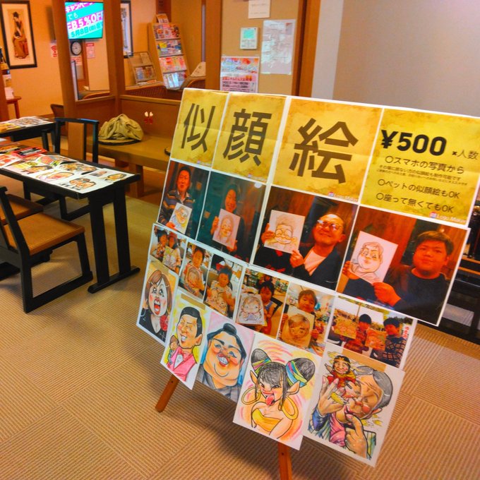 はなみずき温泉喜芳さんで似顔絵屋さんです! 4月29日〜30日 10時~17時 #新潟県 #長岡市 #柏崎市 #はなみずき温泉喜芳 #喜芳 #イベント #GW #似顔絵 #絵描きさんと繋がりたい #絵柄が好みって人にフォローされたい #イラスト好きな人と繋がりたい #イラスト