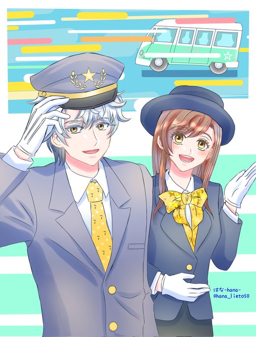 9月20日は『🚌バスの日💫』 ということで、銀河先生と唯ちゃん。 バスの運転手さんとバスガイドさんの二人がご案内。SSRカードの金ピカさんのご乗車お待ちしてます☺️ 「スタオケバスの運転席は銀河先生、あなたの特等席だよ。」 #スタオケアート部 #はなリエートのスケッチブック