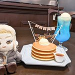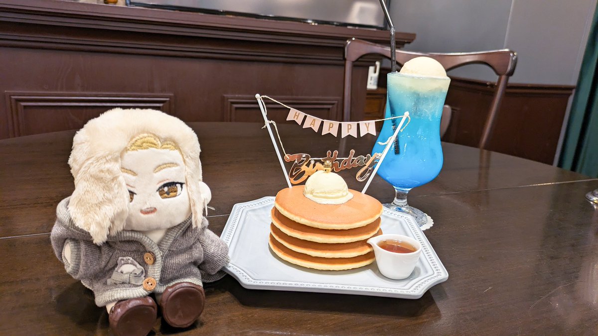 琉夏ちゃんお誕生日おめでとう🩵 ホットケーキでお祝いだね🥞 あなたにずっと幸せが降り注ぎますように✨ (お洋服間に合わなくてうさちゃんパーカーでごめん…大好きだよ) #桜井琉夏生誕祭2023 #桜井琉夏誕生祭2023 #自作ぬい #はば学手芸部