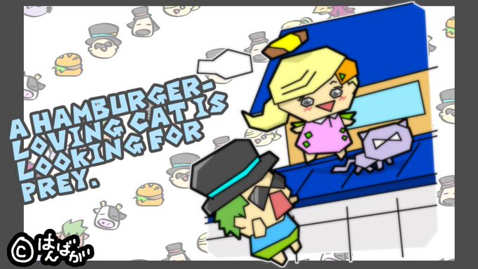【奇遇バーガー3】 今日も ハンバーガー好きな猫が 獲物を探しているよ #はんばがのひと #ハンバーガー #hamburger #絵描きさんと繋がりたい #イラスト好きな人と繋がりたい #絵師さんとつながりたい #ワイ絵リメイク