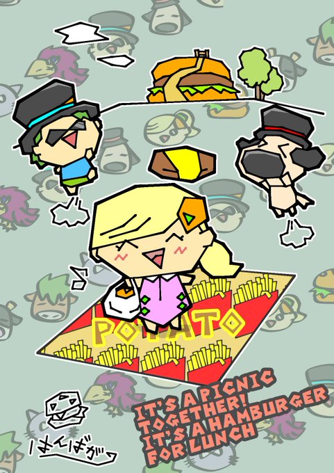 【遠足バーガー】 みんなで遊びに行ったよ お弁当はハンバーガーだ! やっほー!! #はんばがのひと #ハンバーガー #hamburger #絵描きさんと繋がりたい #イラスト好きな人と繋がりたい #絵師さんとつながりたい #ワイ絵リメイク