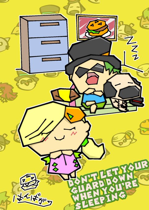 【おやすみバーガー】 わんぱく達の休息 そして今がイタズラのチャンス #はんばがのひと #ハンバーガー #hamburger #絵描きさんと繋がりたい #イラスト好きな人と繋がりたい #絵師さんとつながりたい #ワイ絵リメイク