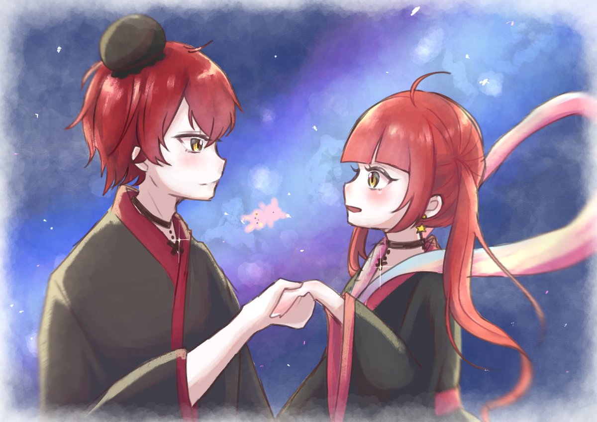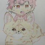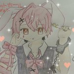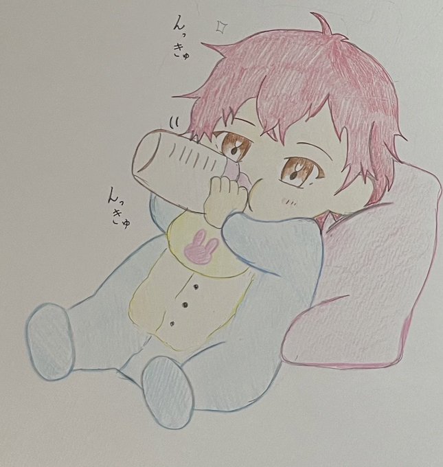 ばぁうくんお誕生日おめでとうのイラスト失礼します( 。•ω•。)っ (左:スキャナーと色選びの相性悪くてほぼ白飛びしたもの 右:カメラで撮ったので若干たわんでるもの) #ばぁうくん生誕祭 #ばぁうのいらしゅと #KnightArt #ばぁうくん #ばぁう民
