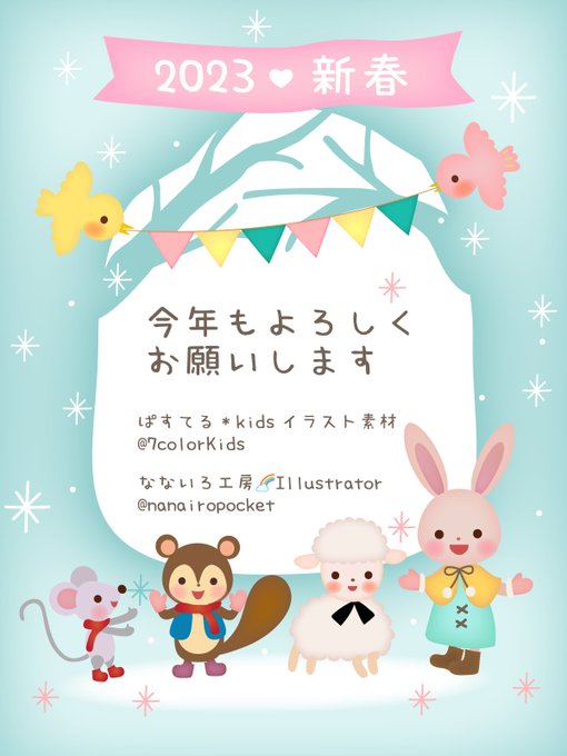 1月4日 いつも沢山のRTとイイね感謝です💕 今年のお正月は、除雪で追われることもなくゆっくりできました うっすら新雪❄️と、静かに新しい年を迎えたこちら地方です 素晴らしい2023年でありますように✨ 今年もどうぞよろしくお願いいたします♪ #ぱすてる・kidsイラスト素材🌈