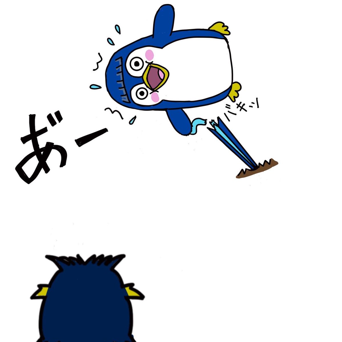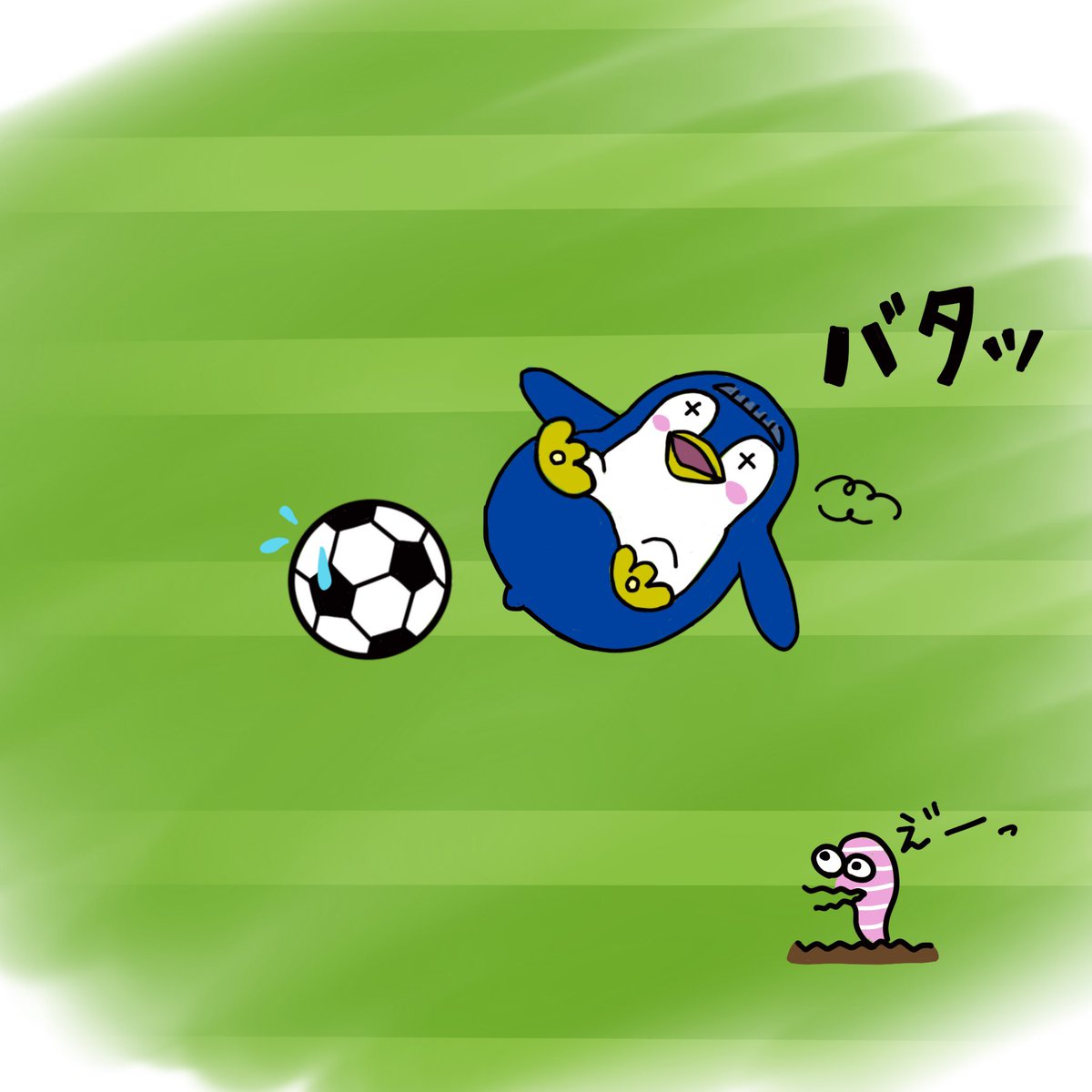 さすがにずっとバランスを保ち続けることは不可能なぱつぺん😂 #イラスト #いらすと好きな人と繋がりたい #penguin #ペンギン #ぱつぺん #illustration #絵が好みな人にフォローされたい #サッカー #ずっこけ