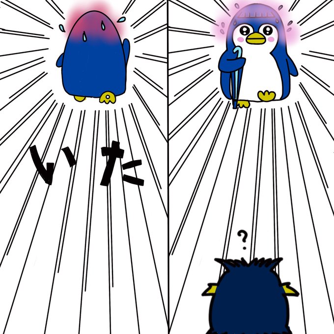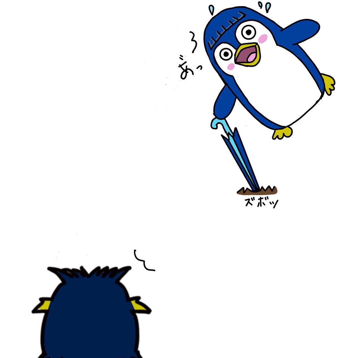 借りた傘が穴に🕳突き刺さったよ😱どうなるぱつぺん!!! 終了まであと2日←急に🤣 #オリジナルキャラクター #オリキャラ #イラスト #絵が好みな人にフォローされたい #penguin #ペンギン #illustration #ぱつぺん
