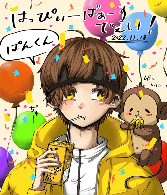 ぱんくんお誕生日おめでとう- ̗̀ 🎂 ̖́-🐒✨ 配信と毎日投稿と本当に継続できるの凄いことだと思ってるし、そのがんばりがたくさん輝くことを願ってます😌🌟 「楽しい」をいつもありがとう~🤝 今日はキラキラな素敵な誕生日となりますように🎉 #ぱんくんは星を一つ貰う #ちんぱんあーと