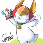 豆知識。 「国民文化祭広島2000」のメインキャラ、「ブンカッキー」を見たみうらじゅん氏が「ゆるキャラ」という概念を見いだした、とのこと。 …なので、ひこにゃんにゆるキャラの先輩、ブンカッキーを持たせてみました(*´∀`) #みんなで記憶スケッチ #ひこにゃん #イラスト