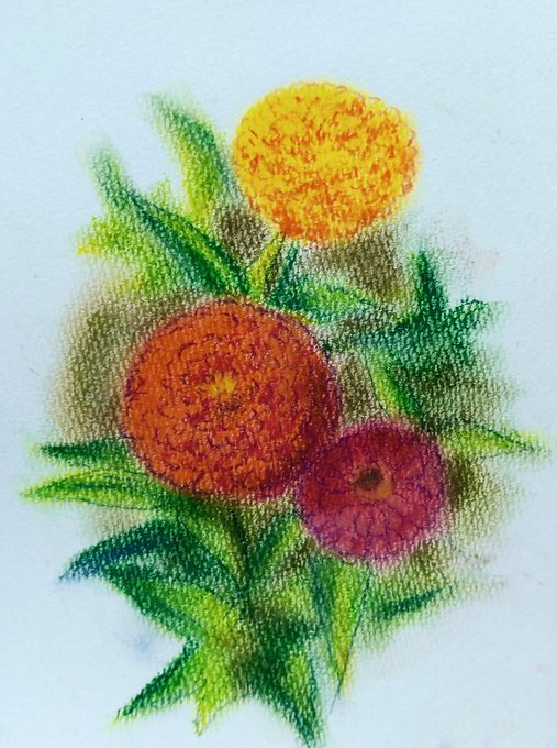 #ひたち海浜公園 に咲いてたジニアを描いてみました。 #イラスト #analogart #artwork #イラスト好きな人とつながりたい #絵描きさんと繋がりたい #みんなで楽しむTwitter展覧会 #アトリエの系譜 #art #トレンドRT宣伝部 #パステル画