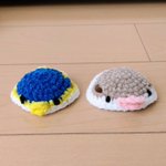 フォローさんち(@masumasumasu_nさん) の文鳥ちゃんがカワイイので勝手に作りました🕊 #六甲山牧場 #ひつじの毛刈りぬいぐるみ #あみぐるみが編みたくなる糸 #文鳥 #色が違ってたらゴメンナサイ #ハコフグ #ハコフグは多分飼ってないと思います