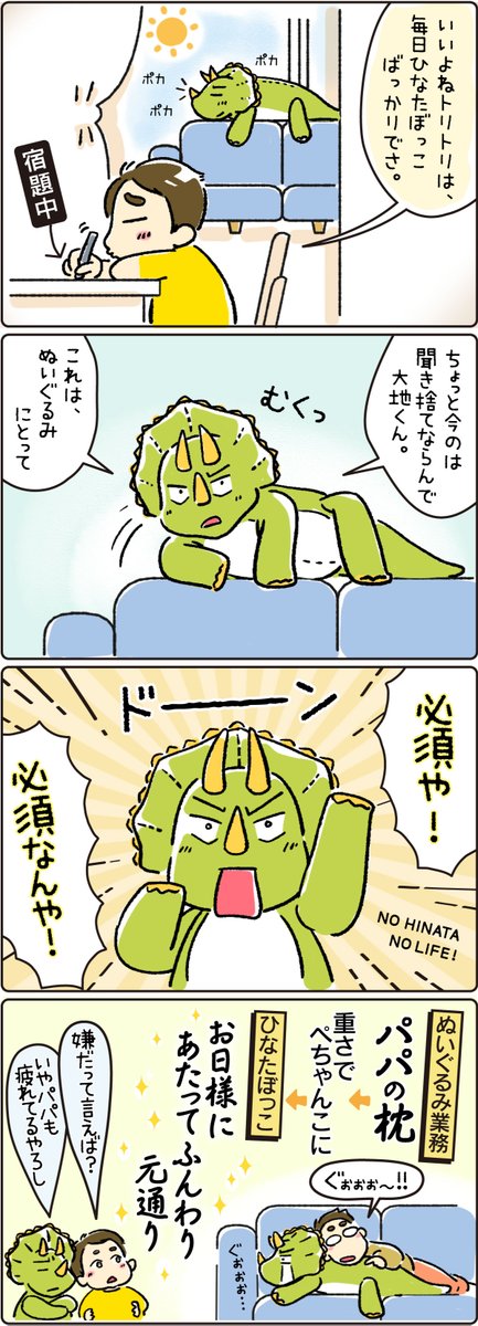 📣マンガ更新しました❗️ 🌞「NO HINATA!NO LIFE!」の話 🦕日課のひなたぼっこは必須。 明かされる、ぬいぐるみ業務の実態😲 #トリトリと #恐竜 #漫画が読めるハッシュタグ #ひなたぼっこ #日課 #ぬいぐるみ #業務 ⏩WEBで他の話も読む yomiuri-osaka.com/lp/toritorito-…