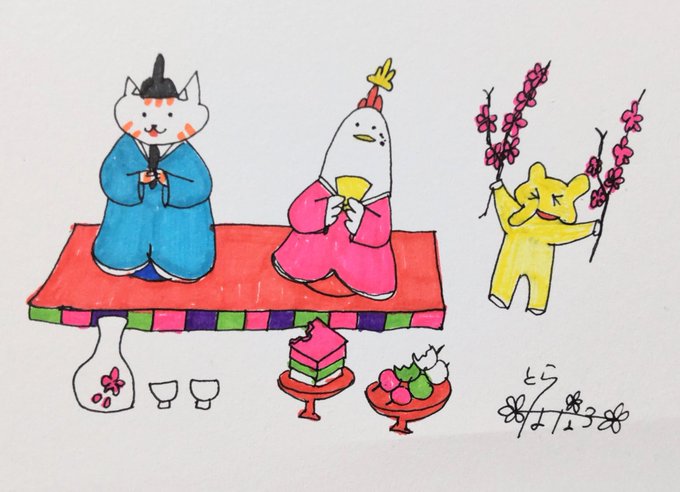 おはようございます!! #雛祭り #ひなまつり2023 ニワちゃん、つまみ食いしたね!? 今日も素適な金曜日を〜🤗 #絵描きさんと繋がりたい #みんなで楽しむTwitter展覧会 #イラスト #油性ペン #マッキー画