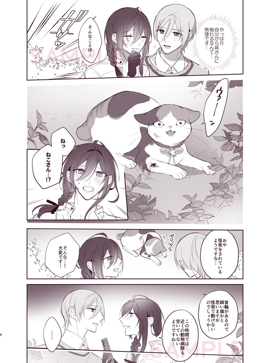 【6/12ひねたまリアル 巽マヨ新刊サンプル】① ネコチャンになってしまったマヨイが、巽に甘えん坊するお話です。 ※サンプルはページが飛んでますのでご注意ください ◻︎B5/34P/全年齢 ◻︎スペース:下1 ■予約🐯(ecs.toranoana.jp/joshi/ec/item/…) ■シブ(pixiv.net/artworks/98942…) #ひねたまリアル