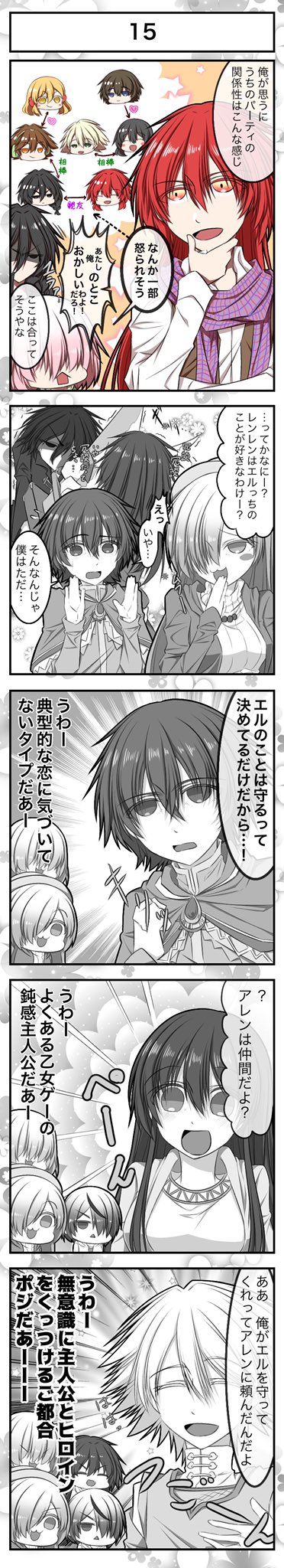 #ひまっくすレコード #絵描きさんと繋がりたい リクたちの関係性についてだよ! いちおこの7人がパーティメンバーで、本編ではちょっといざこざありつつも仲はいいです(´∀`*)今思うとなかなか多いパーティな気がする アレン「キリッ」