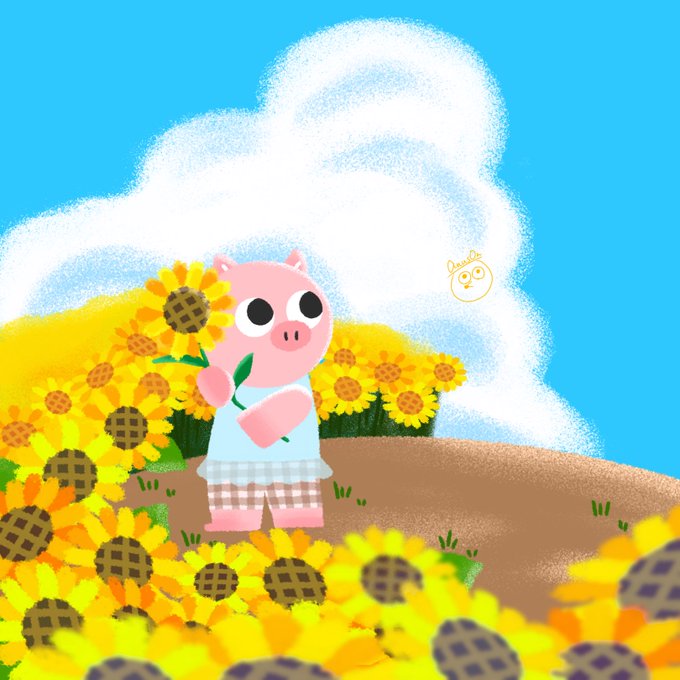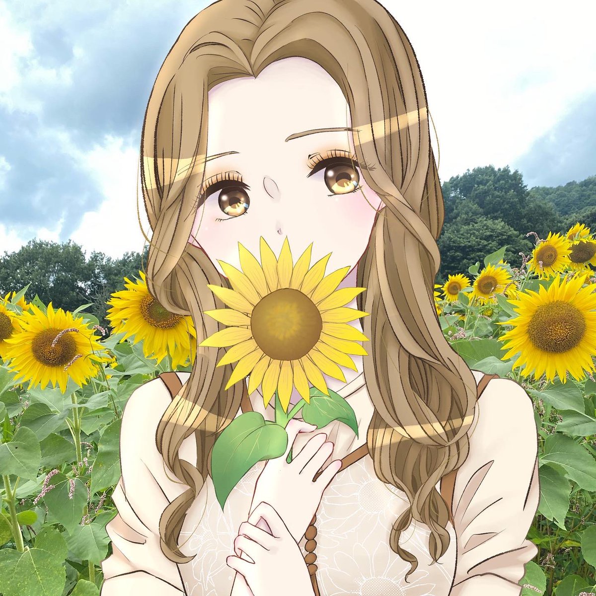 こんなにたくさんの満開の向日葵に囲まれて 幸せいっぱいだ🌻🌻🌻 #夏休み #向日葵畑 #ひまわり畑 #illustraion #イラスト #イラスト好きな人と繋がりたい #絵描きさんと繋がりたい #ゆるいイラスト