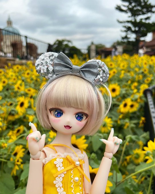 花音と鈴音はひまわり畑を発見しました🌻✨見渡す限りたくさんのひまわりが咲いていて、娘達の笑顔も満開でした😆💕 #もこもかっこ #THユカリnail #MDDはいいぞ #ドル沼CH #p_house #missantroop #ディズニー #ディズニーシー #ひまわり #向日葵 #ひまわり畑 #disney #desneysea