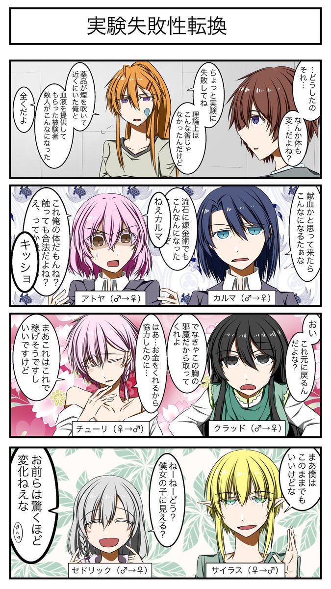 #ひまレコ #絵描きさんと繫がりたい さーて、さてさてさて✨ 自己満足的フォロワー様数記念ひまレコ、ちょっとずつ完成!ちょっとずつ載せていきますえ! 全部載せきったらまとめます! 正直カザトとカルマはそのまま女の子でいいと思っている