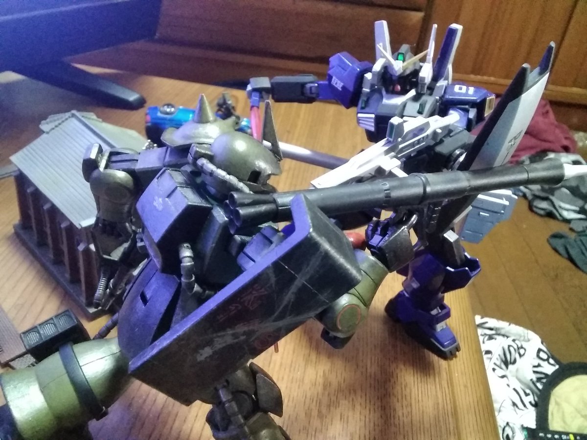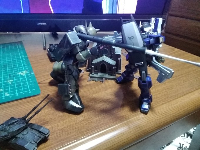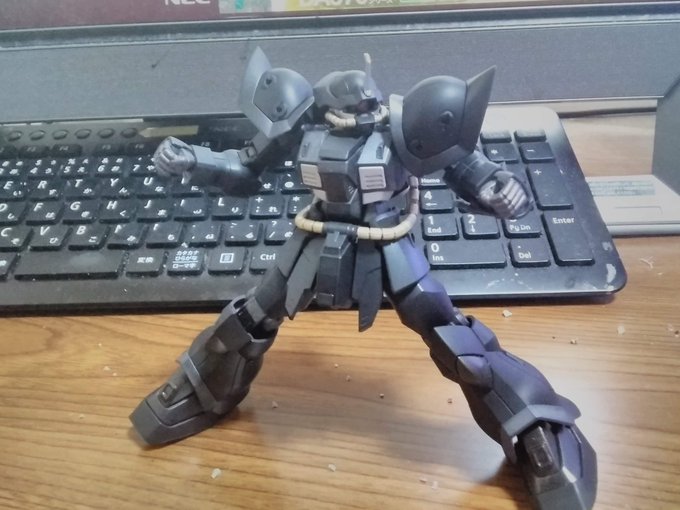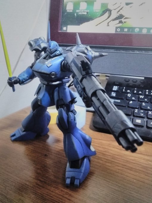 今日のプラモはケンプファー。全塗装をやりすぎたのでたまには部分塗装を楽しみながらモノアイの改造と全体を汚すスタイルでやって艶消し。 ただ、武器は未完成でござい。 #ガンプラ #ガンプラの画像を貼るとRTされると聞いて #ひめのとプラモ