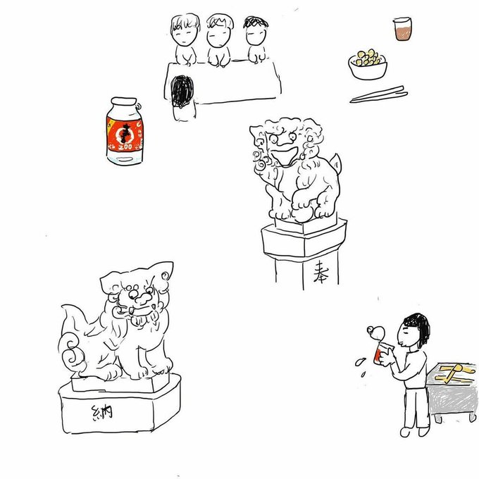 いいアジのイラストです。勇ましい顔の狛犬とか、ワンカップ呑んでる人とか。 #ひよこスタジオ #ひよこスタジオおとなクラス #ひよこスタジオつうしんクラス #ドローイング #イラストレーション #artwork #instaart #drawing #digitalart #digitalillustration #illustration instagr.am/p/Cd352mMBxR-/