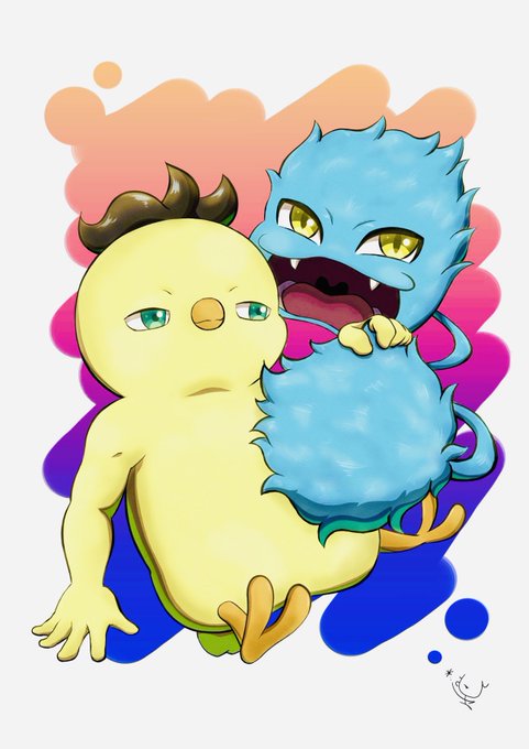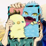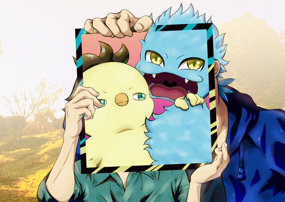 題名「ひよすけともふすけ」 額縁に収まった2人!! その額縁を支える手は一体だれ?🤔 (ひよすけの目に手が重なっちゃったところがちょっと失敗したな😵 反省反省… byひよ理) #Photoshop #イラスト #ひよすけ #もふすけ #絵描きさんと繋がりたい