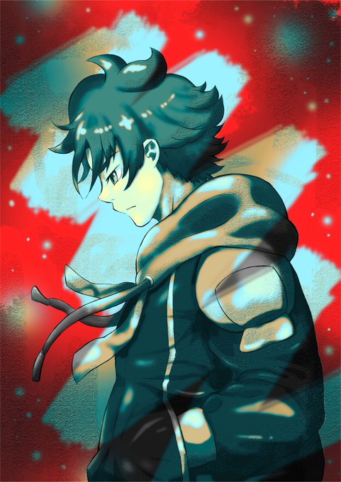 さいとうなおき先生の動画を参考に描きました! ソフトの機能で分からないことが多いかったけど、こういう使い道もあるんだなって、凄く勉強になりました✨ ひよすけの擬人化🐥→🧑 ダークな感じ?でひよすけの瞳と同じ青緑を強調してみました🌌 #Photoshop #ひよすけ #ひよすけ擬人化