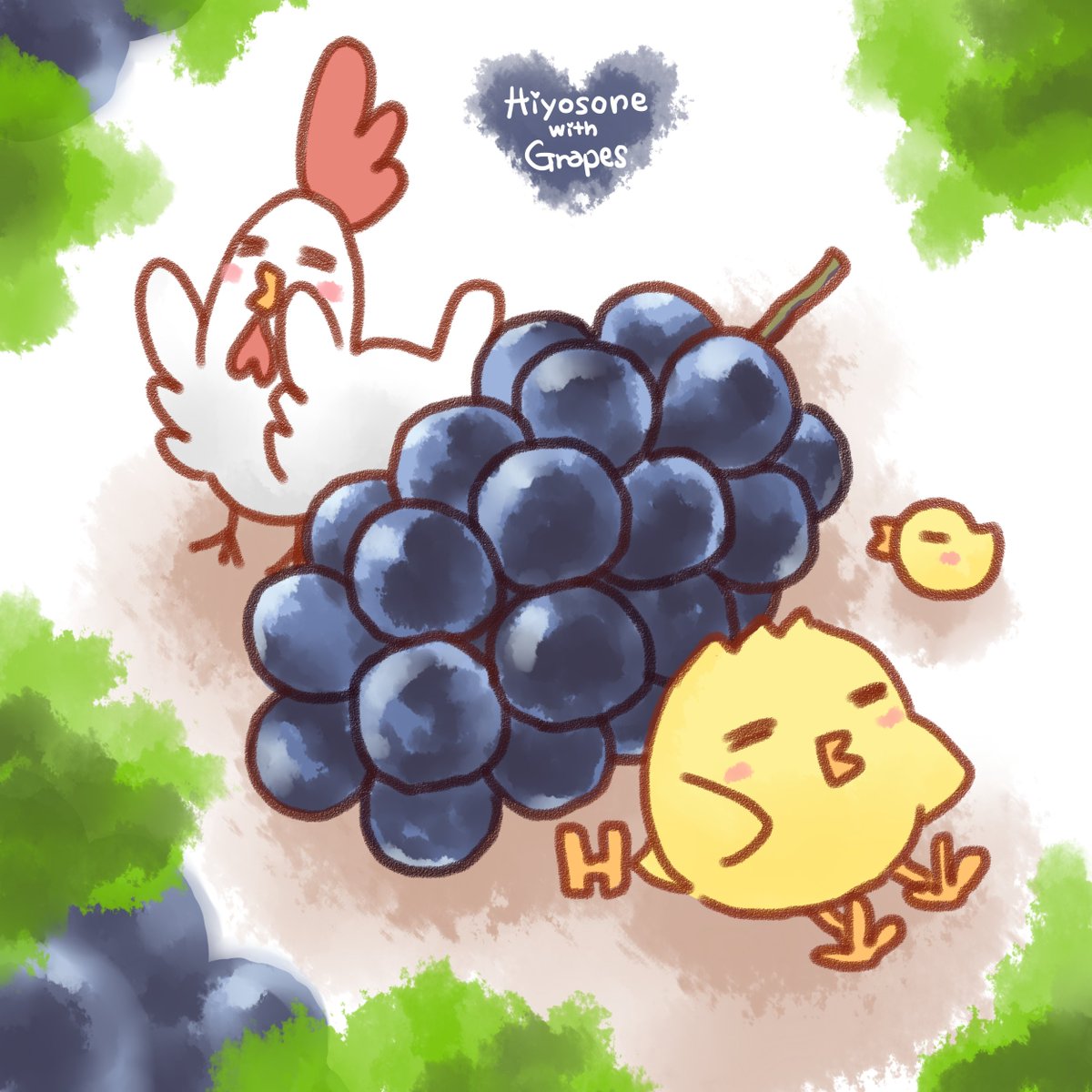 旬の食べ物といっしょ!シリーズ♪ 本日は「葡萄といっしょ!」です😊✨ #ひよそね #ひよそねといっしょ #秋の創作クラスタフォロー祭 #イラスト好きさんと繋がりたい #絵柄が好みって人にフォローされたい #葡萄 #秋の味覚