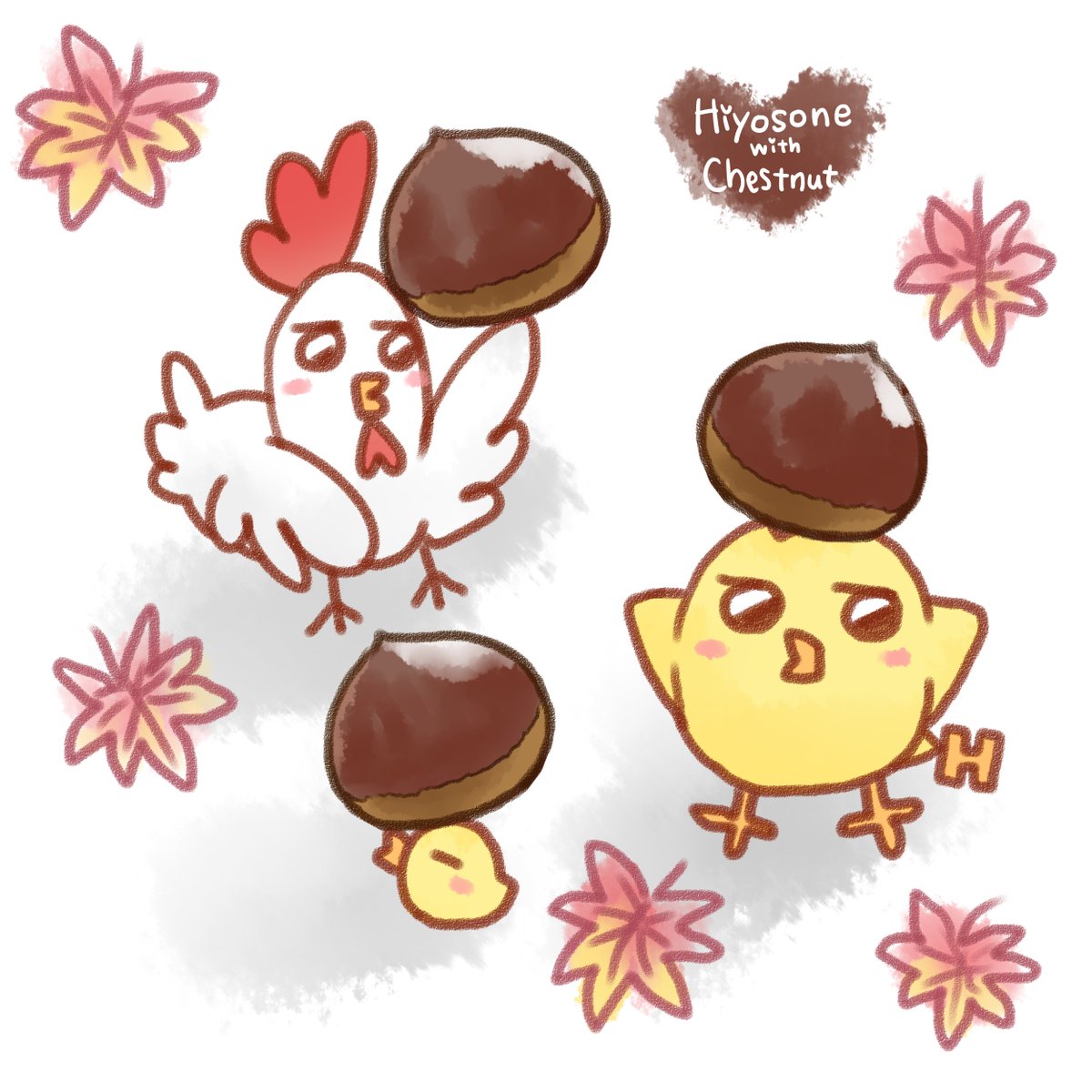 旬の食べ物といっしょ!シリーズ♪ 本日は「栗といっしょ!」です😊✨ #ひよそね #ひよそねといっしょ #秋の創作クラスタフォロー祭 #イラスト好きさんと繋がりたい #ほのぼの #イラスト #栗 #秋の味覚