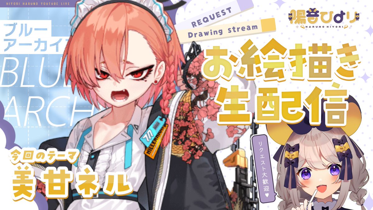 【#ひよりにチューもく】 ⏰8/16(火)21:00~ #ブルアカ 妄想お絵かき 🎦youtu.be/PHt0xzYWcqI ୨୧┈┈┈┈┈┈┈┈┈┈┈┈┈┈┈୨୧ 今回のテーマは【美甘ネル】✨ お誕生日イラストも一緒に描けたらいいな…💛 妄想&リクエスト待ってるよ! ▽マシュマロ onl.sc/786AUpZ