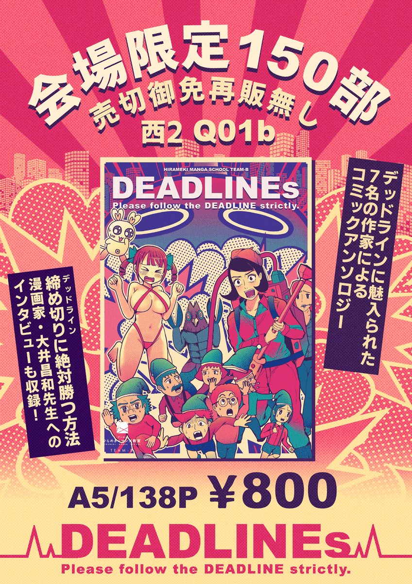 【お品書き】 ─ヘ√レv─DEADLINEs─vヘ√レ─ 💣 11月27日(日) #COMITIA142 【Q01b】 💣 A5/138P/¥800 💣会場限定150部‼️ 売切御免再販無し‼💣 ギリギリなデドランを会場で救ってほしいデド! 待ってるデド〜〜〜〜〜ッ! #コミティアお品書き #ひらめきマンガ