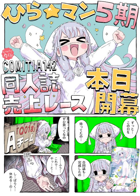 🎉コミティア本日開催🎉 準備万端‼️みんな忘れ物はない⁉️👀 この日のためにAチーム、ボロボロになりながらも頑張ってきました‼️😭 みんなありがとう‼️ 全力で今日を楽しむなの〜🥳🌟 秘密ちゃんも最後まで頑張るの‼️ #COMITIA142 #ひらめきマンガ #ぼくたち秘めてます #漫画が読めるハッシュタグ