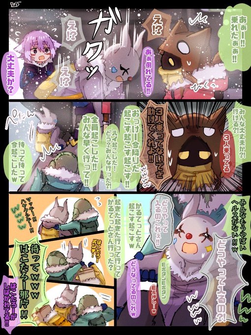 【探しています】 昨夜BinTRoLLのProject Winterを見に行ったまま私の心が雪山から帰ってきません。まだハロウィンFAも描き終わっていないのでとても心配しています…。 見つけた方、どうか現実に引き戻してください。 画像はほのぼのトランシーバー組です。 #びんとろうぃんたー #bintrollFA