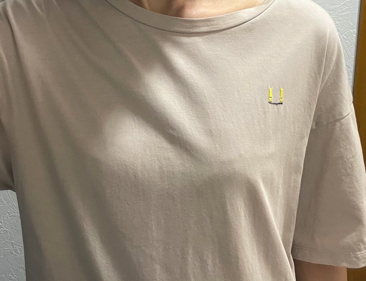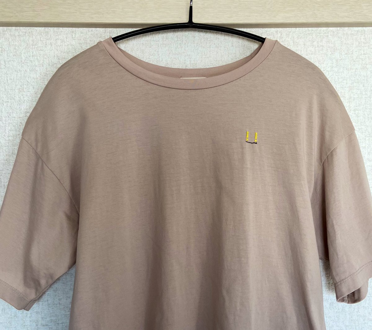 はこたろさん刺繍できた📦 良い色の服があったので服に刺繍 着るとこの位置にくるよ(3枚目) ちょっとゆがんでしまったけど及第点!いつかやり直そうかな📦 #bintrollFA …? #はこたろーisGOD #びんとろ手芸班