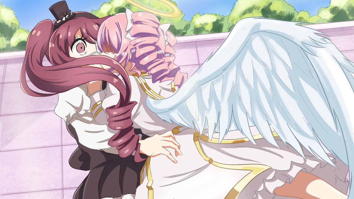 過去絵で恐縮ですが、ぴのちゃん、お誕生日おめでとう🎉🎉🎉 昨年は想像でもちころちゃん描いたけど、その後登場して本当に良かった😆 花園さんのもちころちゃんと並べられて、今年は幸せいっぱいですね😊 #ぴの生誕祭2023 #ぴの生誕祭 #邪神ちゃんドロップキック