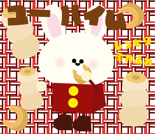 フィナンシェやマドレーヌよりもバームクーヘンが好き~! I like the feeling of being a layer of Baumkuchen. #今日は何の日 #バウムクーヘンの日 #ユーハイム #イラスト #illustration #うさぎ #ぴょんぴょ~ん