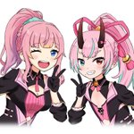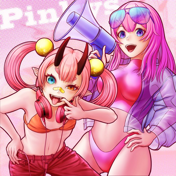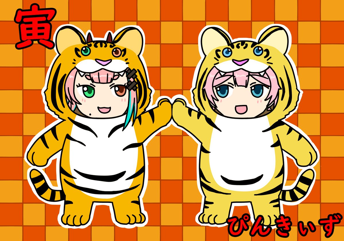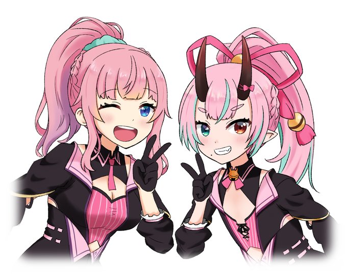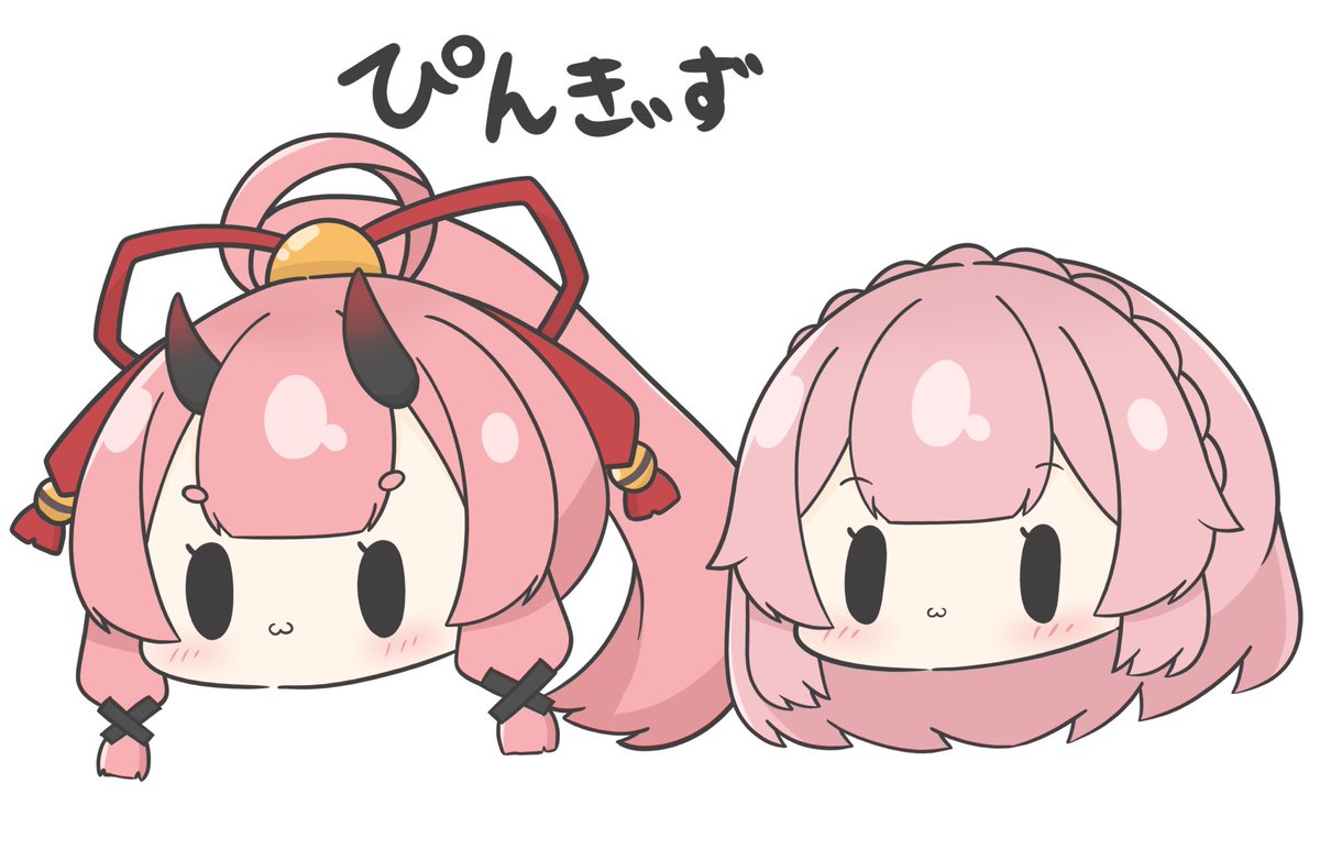 昨日誕生日だったぴぃちちゃんと今日復帰したももちゃんのつままれ風イラストです2人ともおめでとう!! リプに透過版もおいときます(ˇωˇ) #鬼ヶ島ぴぃち爆誕2022 #ぴぃちの宝物 #水蜜もも復活祭2022 #水蜜画 #ぴんきぃず